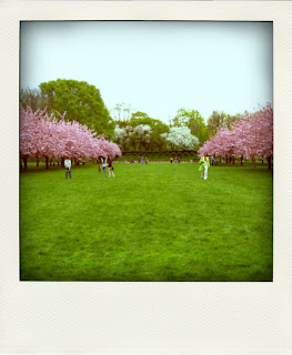 Each Spring, one of the most enchanting events takes place at the Brooklyn Botanical Gardens: Hanami. Hanami literally means "flower viewing" in Japanese. Since we don't have the cherry blossom forecast (sakurazensen) here in America, I went twice to experience the different stages of this amazing process, as the blossoms only last one or two weeks! The first time I went the blossoms must have just bloomed that morning all at once. They were so perfectly in place, as you can see in the polaroids. When I returned a week later, it was just completely different and magical!!! The breeze had created all this wonderful blossom snow, and tiny petals were flying through the air and showering down onto the ground. It was the most cheerful and relaxing vision I've ever seen! Nature is really cool.
